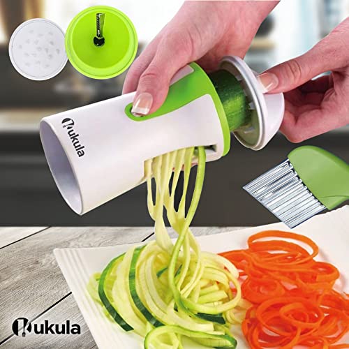 KUKULA Spiralschneider & Wellenschneider Set für Gemüsespaghetti, Pommes Obst und Gemüse. Küchenhelfer mit acht leckeren Rezepten in unserem Kochbuch