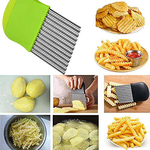 BESSIKON® 1 x French Wave Knife Potato Cutter Vegetable Slicer Stainless Steel Potato Chips Wave Cutter Fruit Vegetable Salad Fries Wave Knife