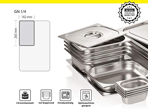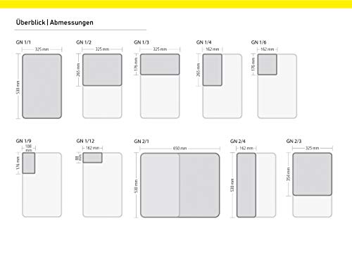 - The dimensions of the GN container and the GN lid are precisely matched to each other and completely seal the GN inserts depending on the application and type.