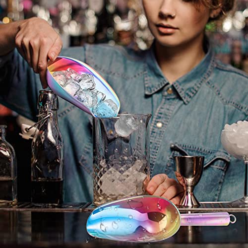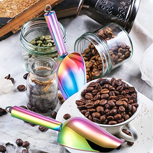 Eisschaufel 2er-Set, HaWare Edelstahl Kleiner Abwiegeschaufel Mehlschaufel Futterschaufel Sackschaufel Abfüllschaufel für Küche, Bar, Buffet, Party, Vielseitig & Spülmaschinenfest – Regenbogen