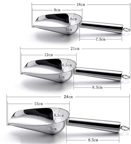 HaWare Edelstahl kleiner Eisschaufel Mehlschaufel 3er Set sind aus hochwertigem Edelstahl gefertigt, Rost- und Korrosionsschutz, es ist gesund und langlebig für den täglichen Gebrauch. Das Schaufelset fühlt sich fest an, wenn es in der Hand gehalten wird. Im Gegensatz zum Kunststoffschaufelset wird der Eimer nach ausgiebigem Gebrauch nicht beschädigt. 3 verschiedene Größen reichen aus, um Ihren täglichen Bedarf zu decken. Perfekt zum Schaufeln von Crushed Ice, Trockenfutter, Reis, Süßigkeiten, Zucker, Nüssen, Kaffeebohnen, Katzenstreu usw. Ideal für Lebensmittelgeschäfte, Bäckereien, Cafés usw.