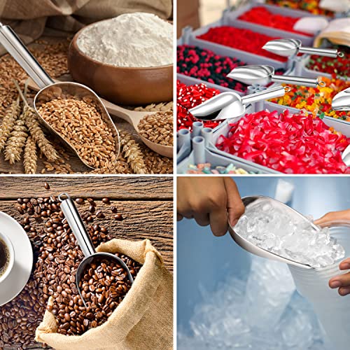 HANDWERKSKUNST: Leicht geschwungenes Design des Mehlschaufelkopfes mit 3 cm tiefem Körper, Perfekt zum Schaufeln von Lebensmitteln und Vermeiden des Verschüttens, Rohrgiff ohne grobe Grate für bequemes Halten, Feste Verschweißung mit dem Abwiegeschaufelkörper, Bieten die beste Leistung für die kommenden Jahre