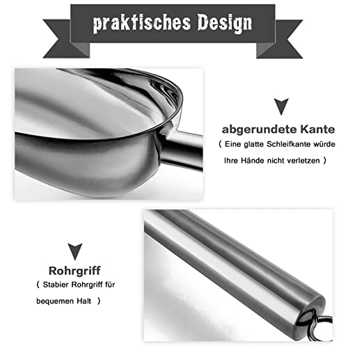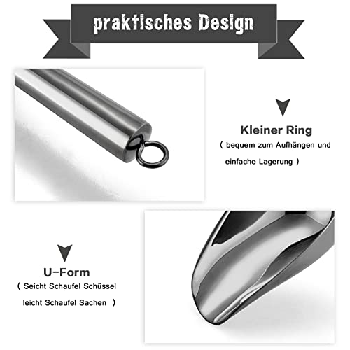TEAMFAR Edelstahl Klein Eisschaufel Mehlschaufel, aus lebensmittelecht Edelstahl ohne giftige chemische Stoffe gefertigt, rostbeständig und langlebig für eine lange Lebensdauer. Diese metall Mehlschaufel wird mit einer kleinen Schlaufe am Griffende zur einfachen Aufbewahrung geliefert. glatter Rohrgriff angenehm in den Händen zu halten. Der spiegelglatte Prozess sieht nach dem Verlassen der Spülmaschine immer wie neu und glänzend aus. 5 Unzen/148ml Kapazität reichen für den Großteil Ihres täglichen Bedarfs. Perfekt zum Aufschöpfen von Crushed Ice, Trockenfutter, Reis, Süßigkeiten, Zucker, Kaffeebohnen, Katzenstreu usw. Das ideale Geschenk für Ihre Familie, Freunde oder jemanden, der ein Lebensmittelgeschäft besitzt. Bäckerei, Café.