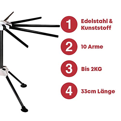 Specification: YUGN® Pasta Dryer Stainless Steel Pasta Dryer Pasta Stand – Contains 10 Arms and Is Dishwasher Safe – For Making Pasta and Spaghetti – Pasta Stand for Drying – Free E-Book