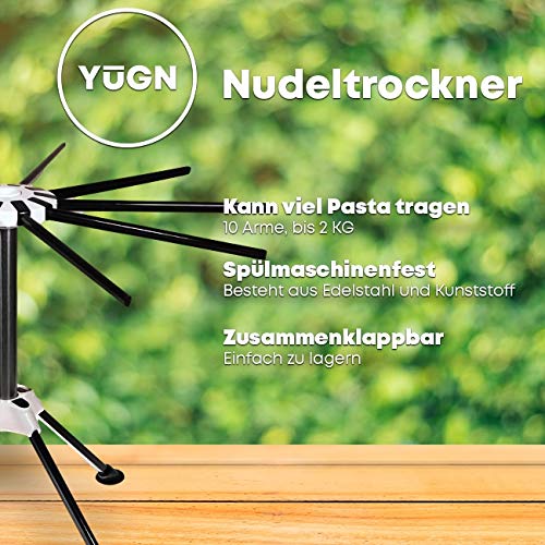 YUGN® Pasta Dryer Stainless Steel Pasta Dryer Pasta Stand – Contains 10 Arms and Is Dishwasher Safe – For Making Pasta and Spaghetti – Pasta Stand for Drying – Free E-Book