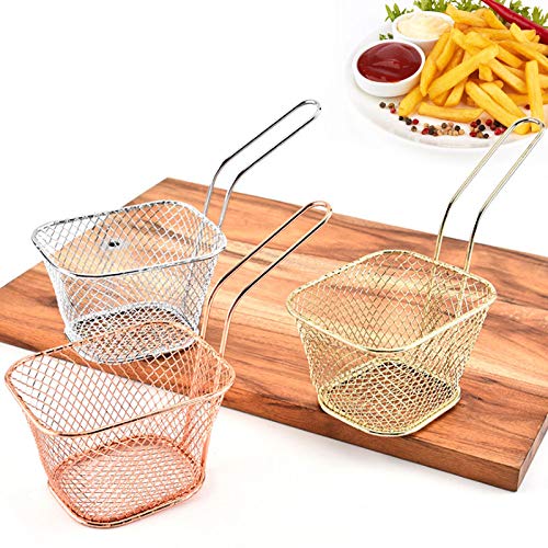 Specification: 8 Pcs Mini Serving Basket Strainer for Chips Onion Rings Shrimp Vegetable Multicolor Square Iron Plating Fryer Frying Basket Kitchen Cooking Tools Gold