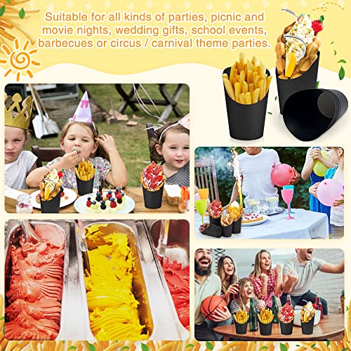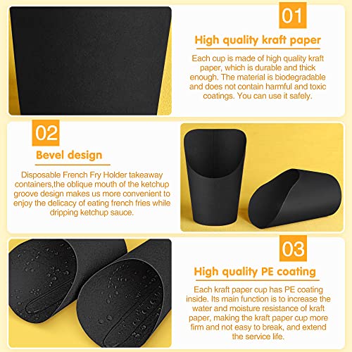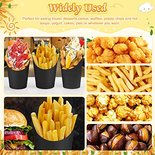Specification: DURANTEY Pack of 50 Kraft Paper Cups Kraft Paper Cups Multifunctional Chip Holder Black Chips Box with Slanted Mouth Snack Container Kraft Paper Cake Chip Holder Paper for Waffle Ice Cream