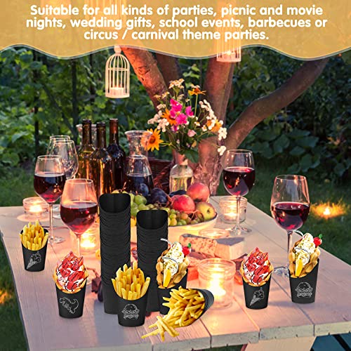 50 black kraft paper cups: the package contains 50 snack containers kraft paper, each size is 12.2 x 8.2 x 6 cm / 4.65 x 3.27 x 2.36 inches, 14 ounces, suitable size and enough quantity to meet your different needs. The chip holder is non-greasy, clean and convenient to hold snacks, desserts, ice cream or anything else you want.