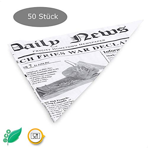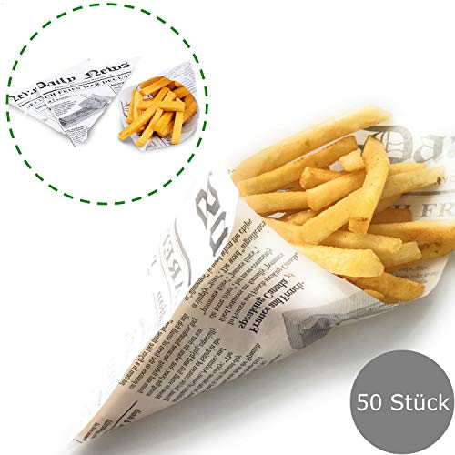Brand quality from Kerafactum – Pack of 50 greaseproof chips bags, potato sticks for fish and chips, suitable for French Fries motif Daily News – Size 25 x 18 cm
