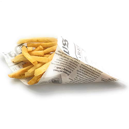 Specification: Kerafactum® – Pack of 50 greaseproof chip bags, potato sticks for fish and chips, French fries motif, daily news newspaper bag, newspaper bag, size 25 x 18 cm