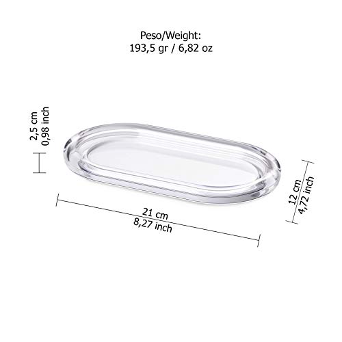 Specification: Omada Design tea tray in unbreakable acrylic with coloured base and transparent edge, 21 x 12 cm, ideal for biscuits, chocolates and chips, Linea Crystal, white colour