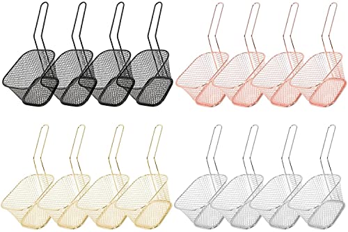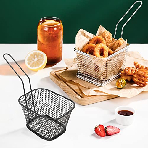 Specification: Set of 4 Mini Square Frying Baskets, Stainless Steel French Fries Holder, Frying Mesh Basket, Cooking Sieve for Chips, Onion Rings and Chicken Wings (Black)